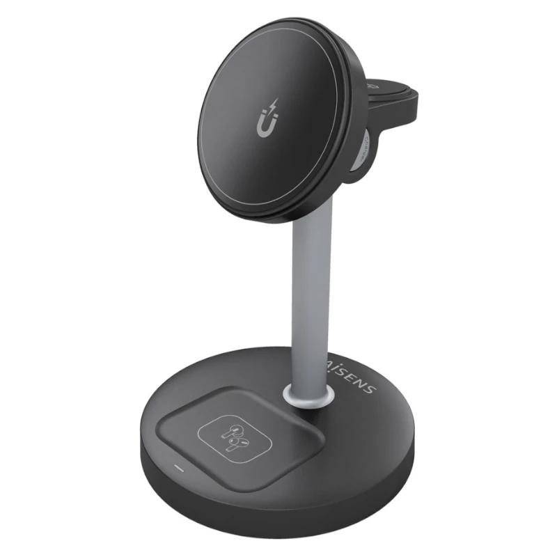 - Compatible con todos los móviles y auriculares con estuche de carga que soportan protocolo Qi. Nota: El móvil debe ser compatible con Qi2 o contar con una funda magnética para poder adherirse magnéticamente de forma segura y permitir la carga inalámbrica sin riesgo de caída. Para carga inalámbrica a un reloj, solo es compatible con Apple Watch.